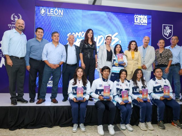 León, Guanajuato, 14 de agosto. – La alcaldesa de León, Alejandra Gutiérrez Campos entregó reconocimientos a medallistas leoneses que alcanzaron podio en la Olimpiada Nacional CONADE 2025, celebrada en los estados de Jalisco, Tlaxcala, Yucatán, Colima y Puebla.