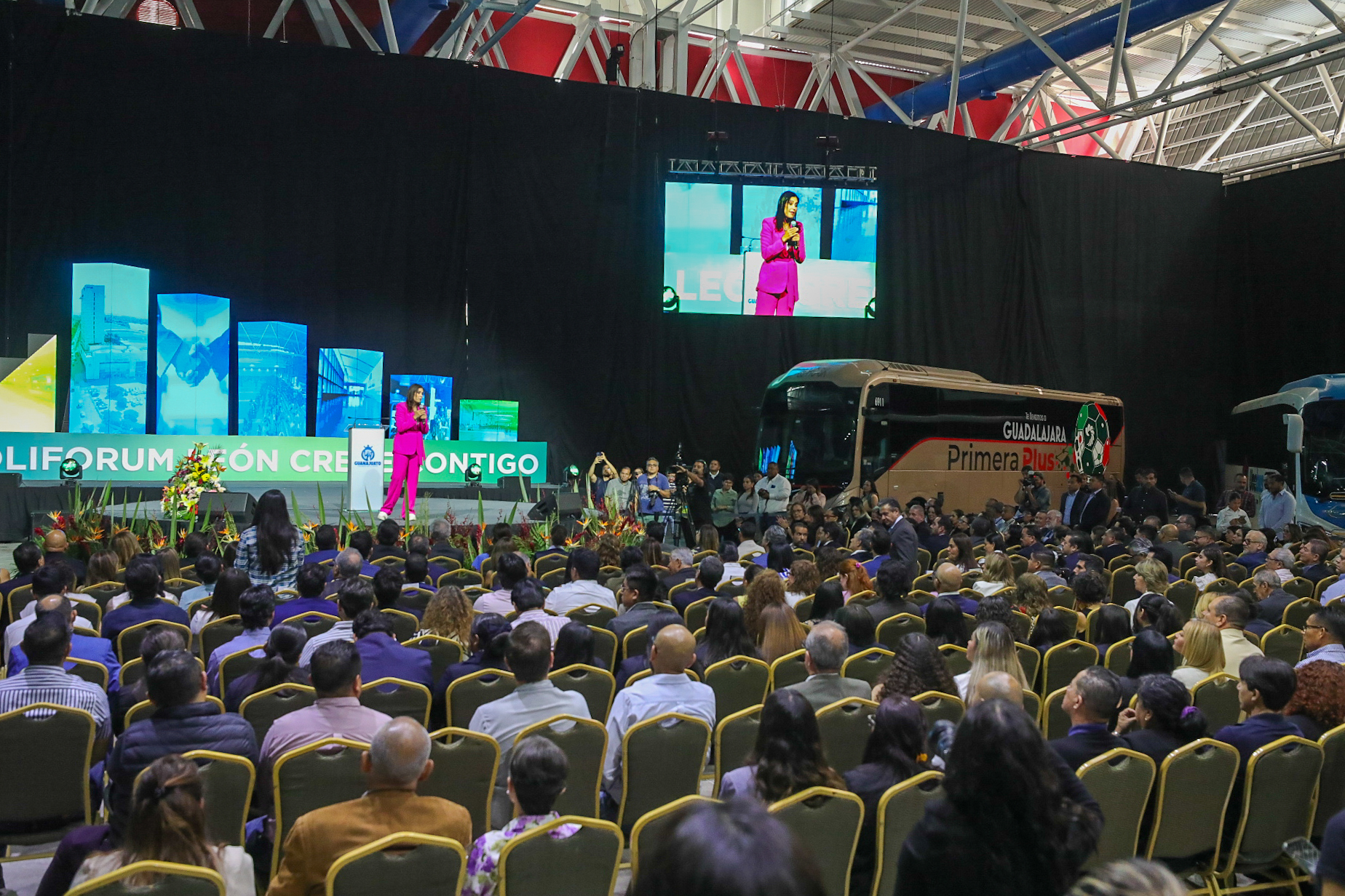 “Poliforum es sinónimo de la historia de León porque en estos pasillos siempre al recorrerlos se siente una mezcla de trabajo en equipo, de visión y sobre todo ese gran espíritu leonés que sueña en grande”, expresó.